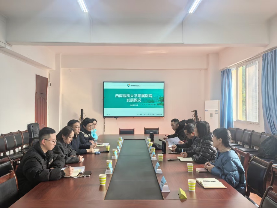 一行的到访表示热烈欢迎,并对西南医科大学自1951年建院以来的发展历史及临床医学学科的建设情况做了详细介绍。他谈到,西南医科大学是一所学科门类较为齐全,学科特色突出的医学类院校,临床医学学科是省一流建设学科、在ESI全球排名前1%机构中位列21.94%,拥有5个国家临床重点专科、17个省临床重点专科,目前在读研究生1500余人。